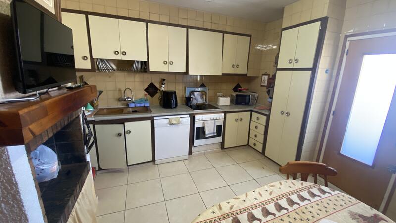 L'étage supérieur offre un salon-salle à manger lumineux avec une cheminée, trois chambres confortables, deux salles de bains avec douche et une grande cuisine avec cheminée, idéale pour profiter de moments conviviaux en famille.