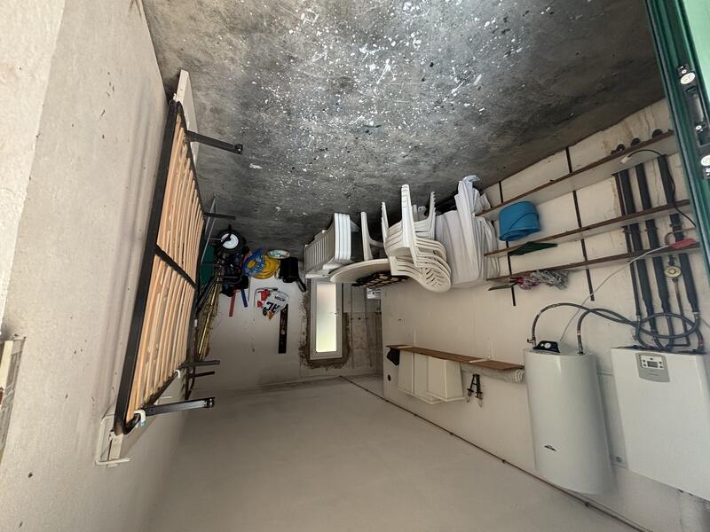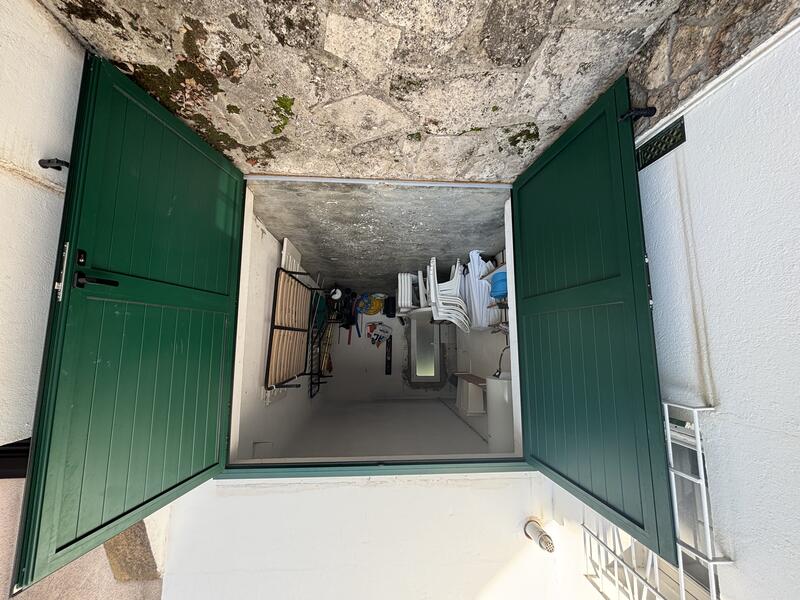Garage fermé avec espace pour une voiture et plusieurs motos, ainsi qu'une grande rampe extérieure privée